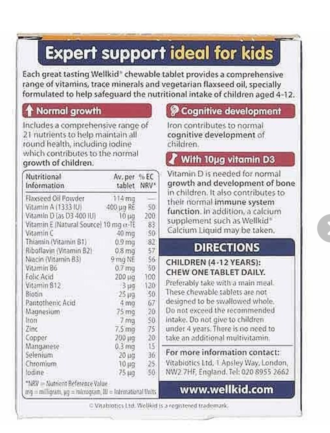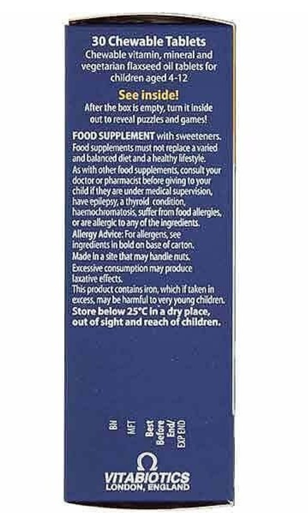 قرص مولتی ویتامین جویدنی ول کید ویتابیوتیکس 30 عددی