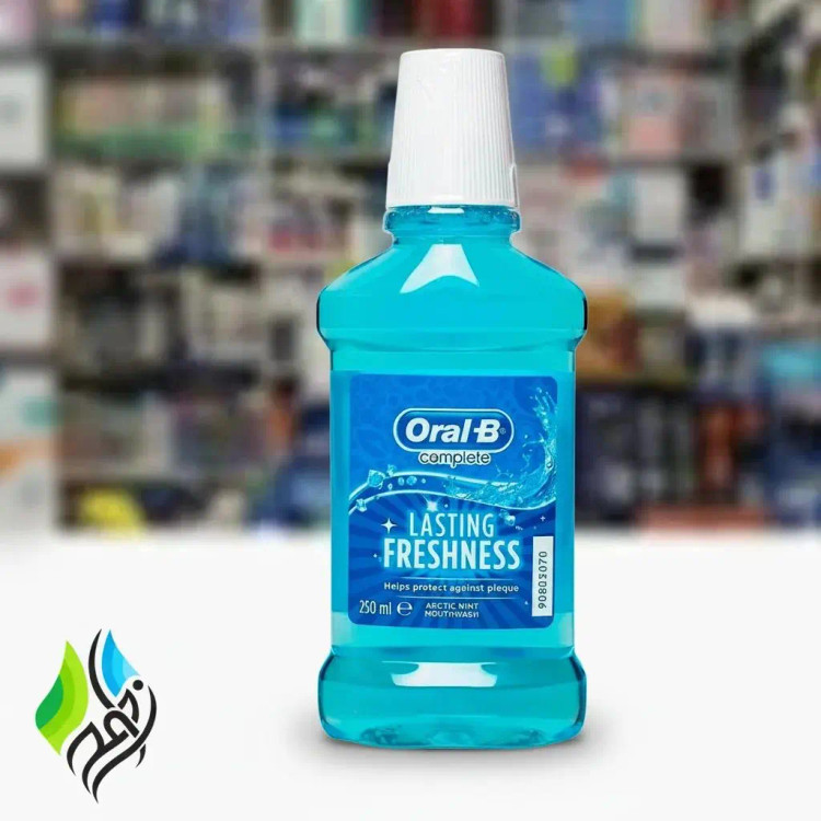 دهانشویهی حرفهای Oral-B Complete Lasting Freshness با عصارهی نعناع قطبی (Arctic Mint) طراحی شده تا دهان را از باکتریهای مولد بوی بد پاک کرده و از تشکیل پلاک دندانی جلوگیری کند.