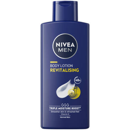 لوسیون بدن مردانه NIVEA Men Revitalising به طور ویژه برای پوست نرمال تهیه شده است تا انرژی و لطافت پوست را در طول روز حفظ کند. این محصول با ترکیبات مغذی از جمله ویتامین E، پوست را به طور عمقی آبرسانی میکند و تا ۴۸ ساعت حس شادابی و طراوت را به آن بازمیگرداند. جذب سریع، بافت سبک و بدون چربی، آن را مناسب استفادهی روزانه پس از حمام یا تمرین ورزشی میسازد. رایحهی مردانه و خنک آن پوست را تازه و زنده نگه میدارد.