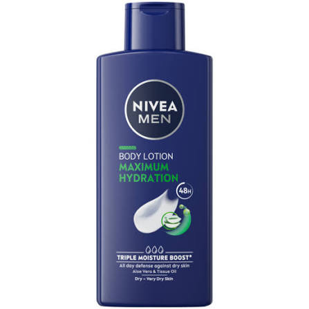 لوسیون بدن مردانه NIVEA Men Maximum Hydration برای پوست خشک و خیلی خشک طراحی شده است. این لوسیون با ترکیب مؤثر آلوئهورا و ویتامین E، رطوبت طبیعی پوست را تا ۴۸ ساعت حفظ میکند و از احساس خشکی و کشیدگی جلوگیری مینماید. بافت سبک و جذب سریع آن بدون ایجاد چربی روی پوست، احساس نرمی و لطافت را به پوست بازمیگرداند. رایحهی مردانه و ملایم این محصول نیز حس تازگی و اعتمادبهنفس را در طول روز افزایش میدهد.